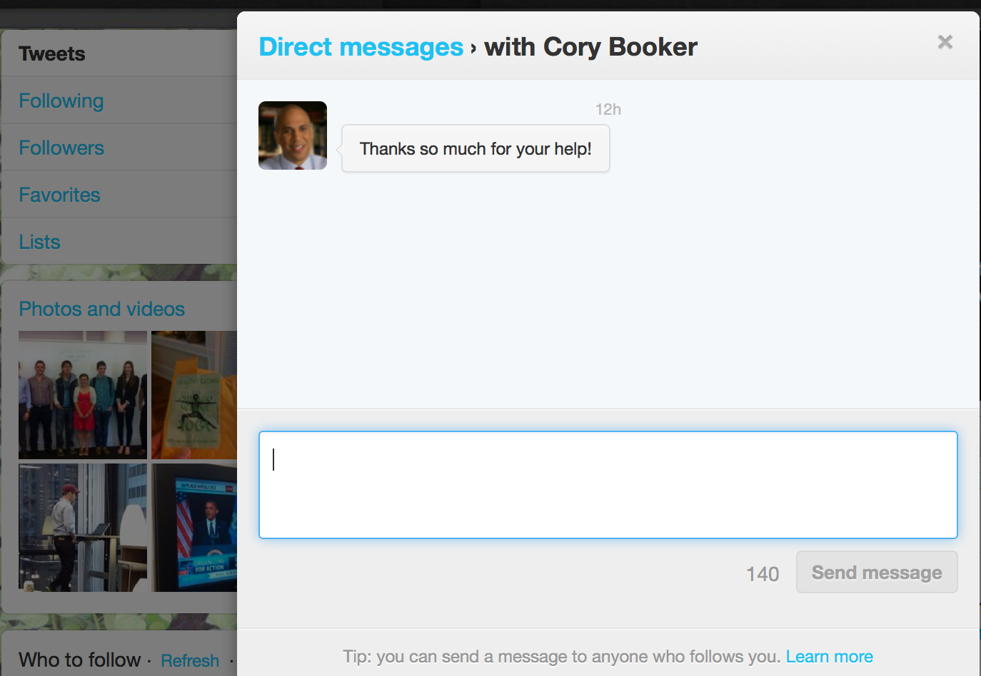 cory booker tweeted at me